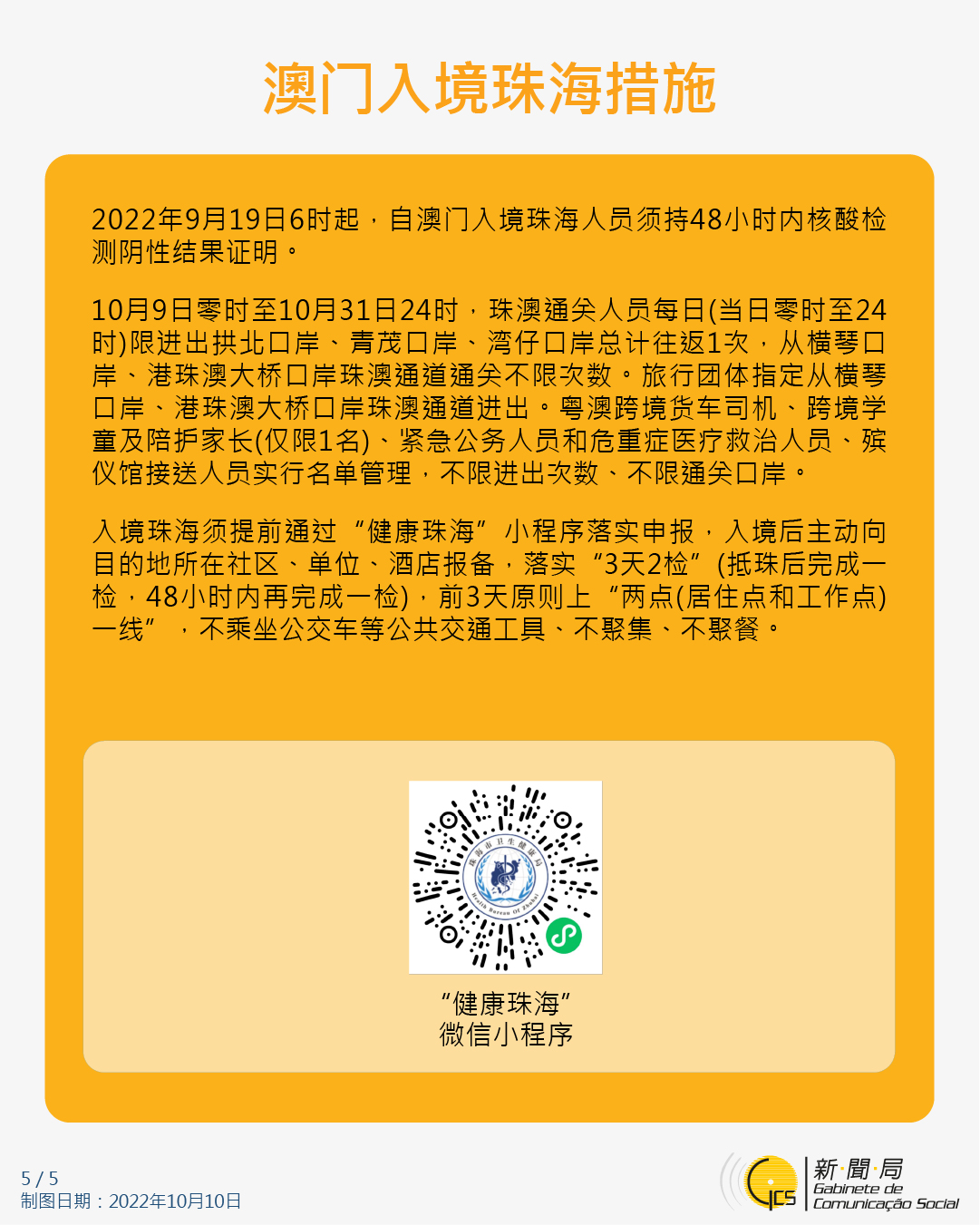 【图文包】最新入境澳门的防疫措施 (2022/10/10)