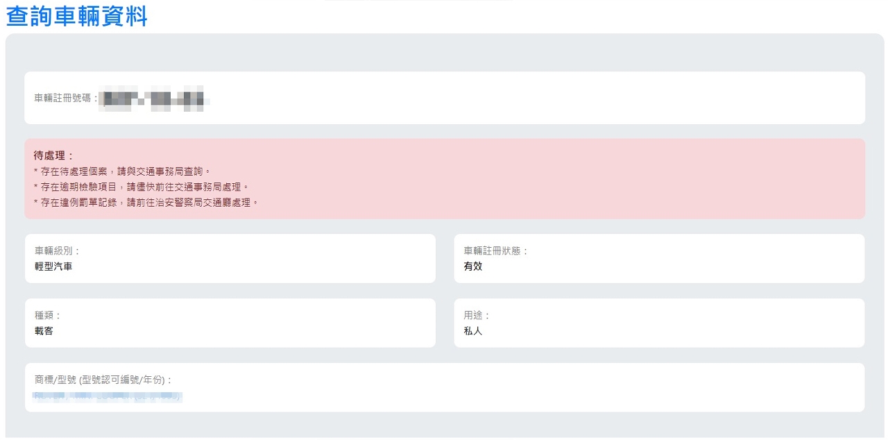• 查询车辆资料网页增加提醒市民车辆待处理项目的资讯