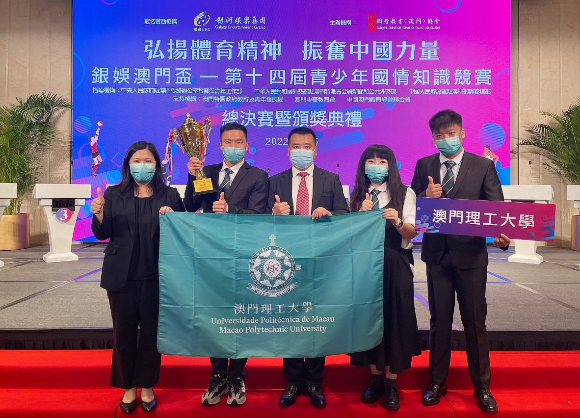 由国情教育(澳门)协会主办、中央人民政府驻澳门联络办公室教育与青年工作部、中华人民共和国外交部驻澳门特派员公署新闻和公共外交部、中国人民解放军驻澳门部队参谋部指导、澳门特区政府教育及青年发展局、澳门中华教育会、中国澳门体育总会联合会支持的第十四届青少年国情知识竞赛总决赛于10月25日举行,今年以“弘扬体育精神,振奋中国力量”为主题,共吸引一万一千名来自澳门29所大学及中学的学生参与,澳门理工大学学生勇夺大学组冠军。