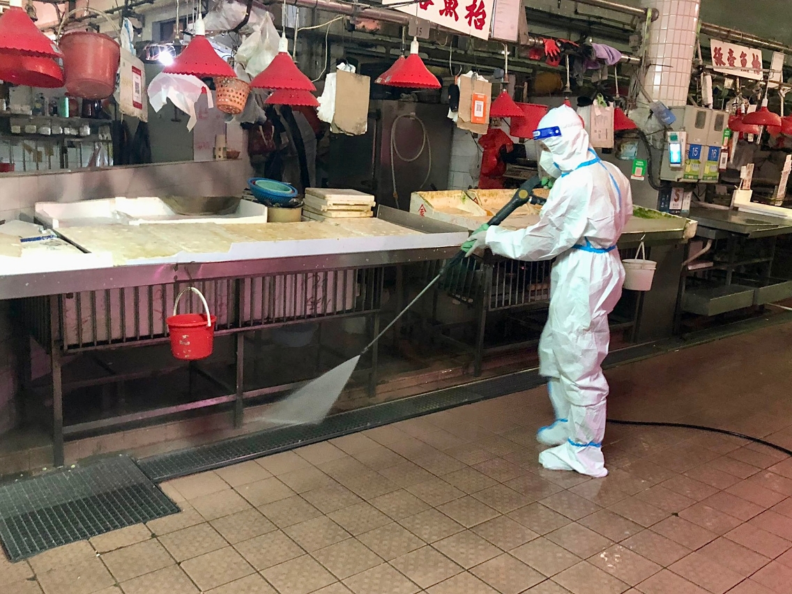因应新型冠状病毒感染的最新情况并配合防控工作,市政署已即时对佑汉街市等多个公共街市进行大型的全面清洁消毒。