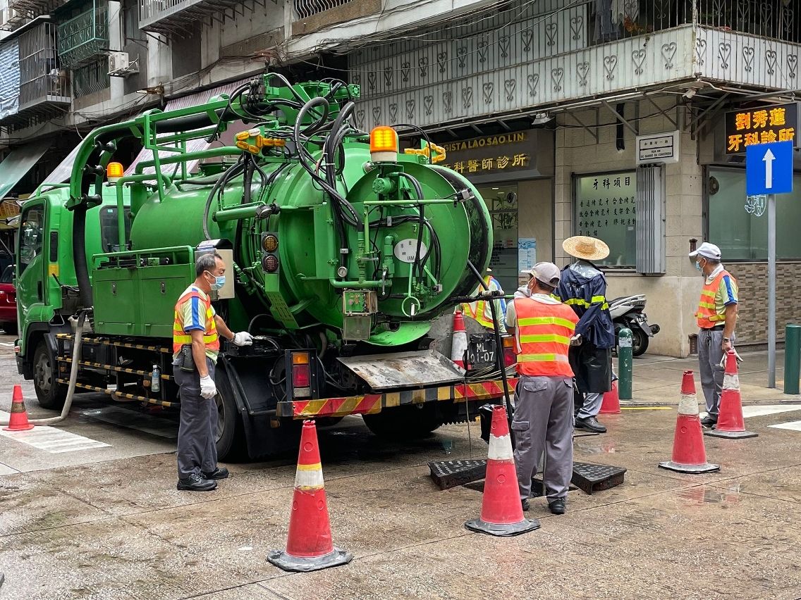 为做好台风前各项防浸减浸应对工作,市政署已加派人员巡查及清理各区渠网,以确保下水道保持应有运作效能,重点清理区份涉及内港区、慕拉士大马路、和乐坊、佑汉、民国大马路、氹仔黑桥及路环十月初五马路一带等渠网;同时,市政署持续监察各主要雨水排涝泵站运作,包括检查泵房内水泵、电动水闸、后备电源等情况,确保台风期间设备运作正常。