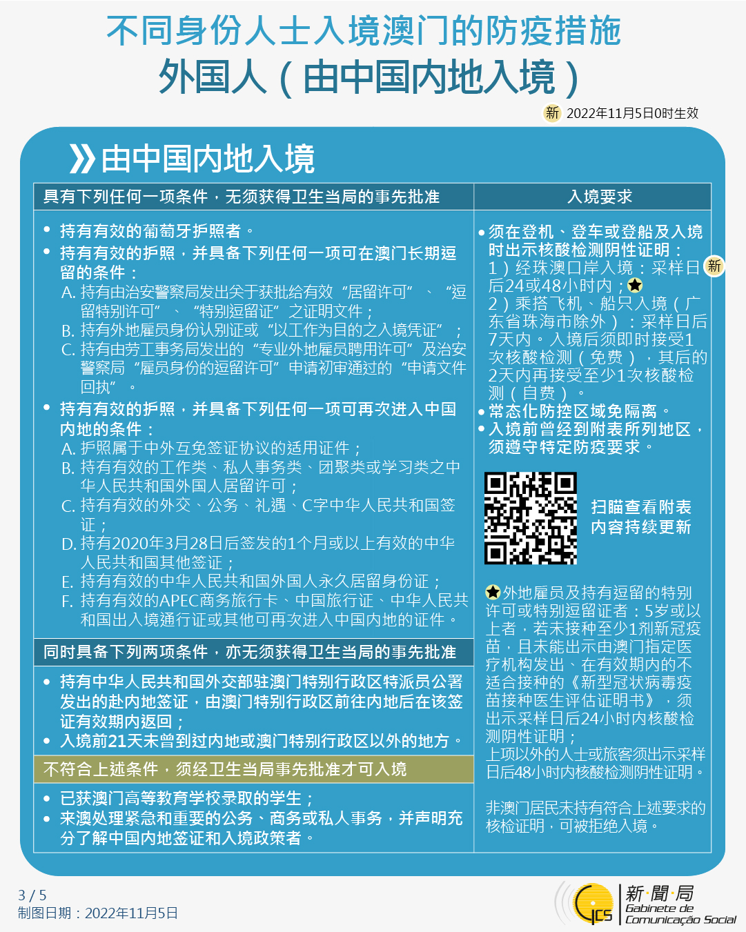【图文包】最新入境澳门的防疫措施 (2022/11/5)