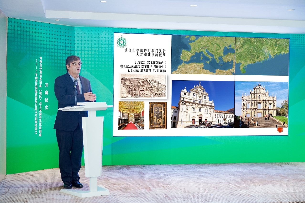 开班仪式上,张家炳致辞时表示,今年6月国务院印发《广州南沙深化面向世界的粤港澳全面合作总体方案》,对于国际青年人才发展尤为重视,推出国际化青年行政人才系列培训,汇众聚力投身南沙打造立足湾区、协同港澳、面向世界的重大战略性平台任务中。与澳门理工大学合力推出“粤澳合作葡语系国家(地区)语言及商务礼仪培训班” 将打响国际化青年行政人才系列培训“第一炮”。