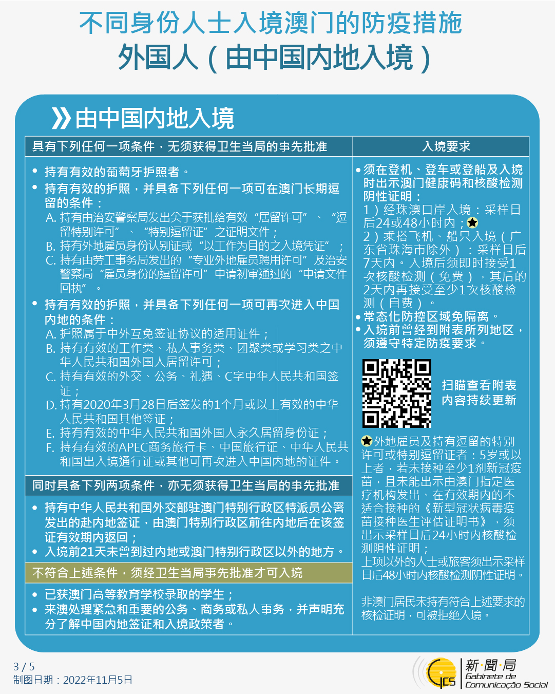 【图文包】最新入境澳门的防疫措施 (2022/11/16)