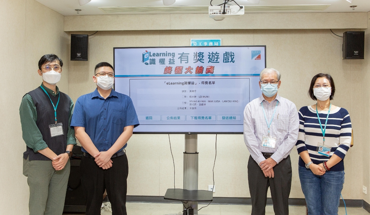 劳工局因应新推出「eLearning劳动权益知多D」网上课程及配合今年“普法新TEEN地”系列活动,今年9月20至11月8日期间推出「eLearning识权益」网上有奖游戏,共四期不同主题,包括“劳动合同”、“工作时间及安排”、“假期及工作补偿”及“工作报酬”,藉此让大众在游戏中识法守法,活动共吸引5,725人次参与。