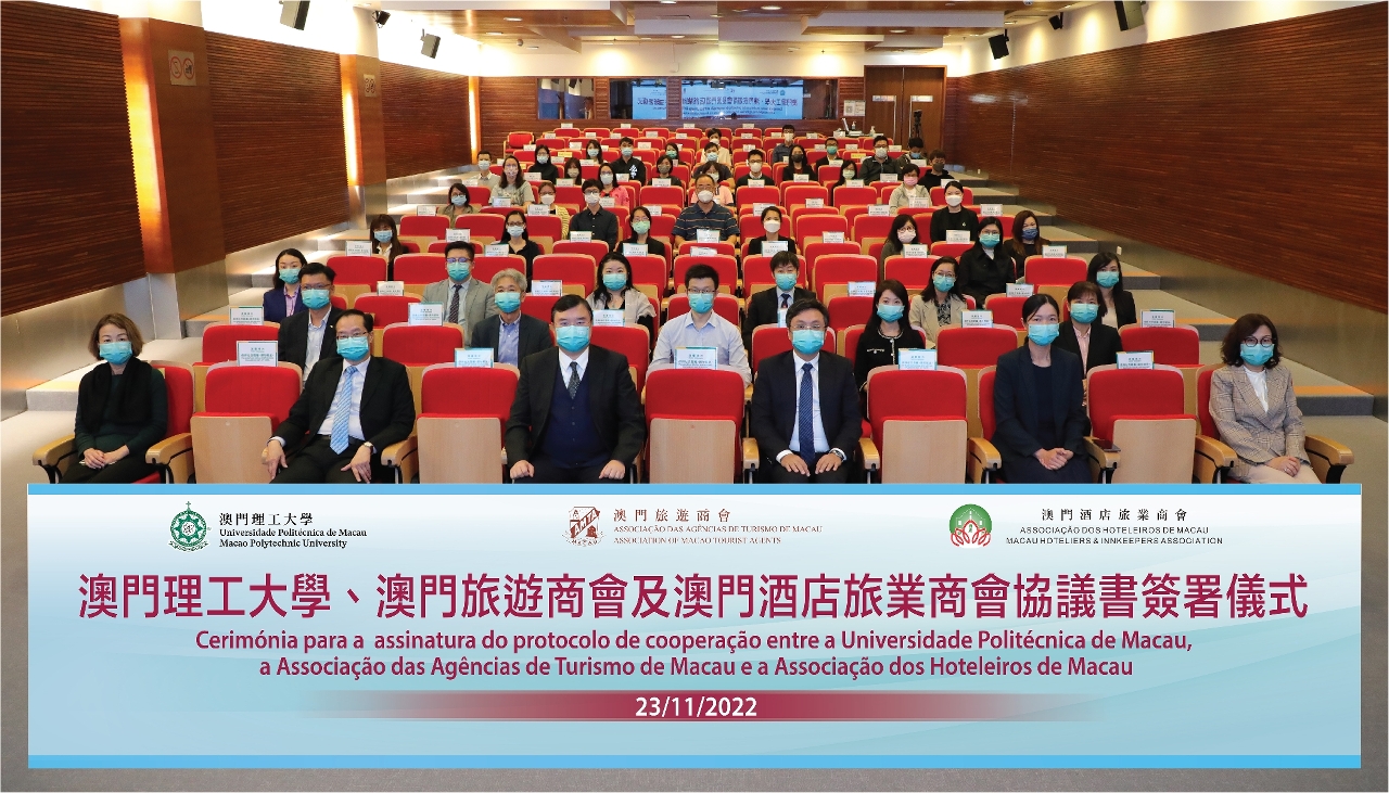 为配合澳门“一中心、一平台、一基地”的发展定位,推动澳门经济多元发展,澳门理工大学、澳门旅游商会及澳门酒店旅业商会《推动澳门世界旅游休闲中心教育文旅示范基地合作框架协议》签约仪式于11月23日早上在澳门理工大学汇智楼隆重举行,澳理大校长严肇基、澳门旅游商会理事长、澳门酒店旅业商会会长张健中代表签约。三方将在智慧旅游、教育培训、研学旅游、科技创新、人才培养等领域加强合作,积极支持澳门特区政府施政,拓展澳门“教育+旅游”品牌活动,助力澳门“1+4”适度多元发展。