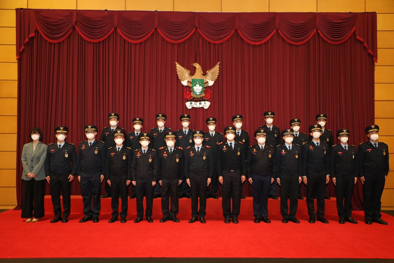 梁毓森局长在仪式上勉励各官员要克尽己任、廉洁奉公、遵守法纪,继续在各自的岗位上发挥所长,为澳门社会的安全稳定做好各项工作,贡献力量。