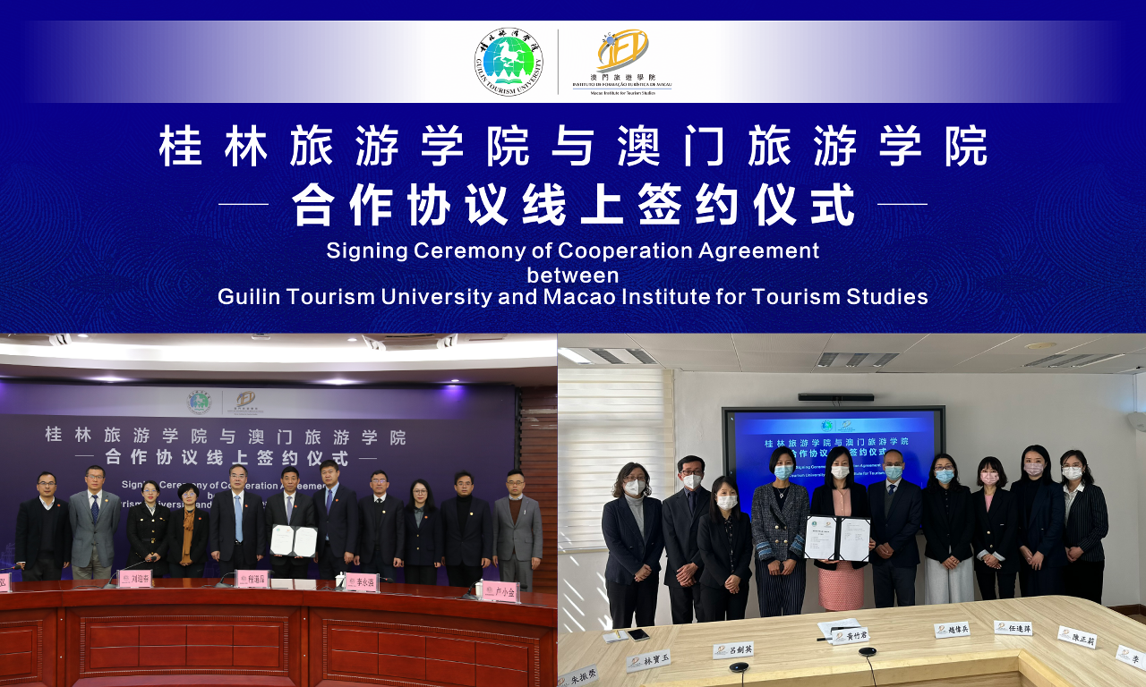 上月,澳门旅游学院与桂林旅游学院签署新合作协议。线上签约仪式在桂林和澳门两地同步举行,由澳门旅游学院院长黄竹君及桂林旅游学院校长程道品代表签署。