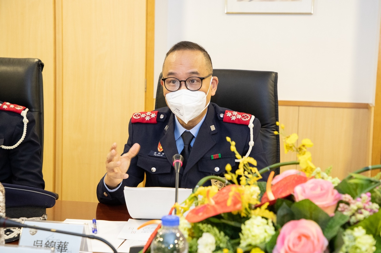 接着,由治安警察局辖下策划行动厅、澳门警务厅、海岛警务厅、交通厅及出入境管制厅的警官代表,就各自范畴的工作情况进行了汇报。分别对治安警察局过去疫情防控的各项工作进行回顾、本澳各区去年治安状况及罪案数字、交通管理工作数据和新增交通措施及规划、出入境通关数据和新法规等进行整体介绍。另外,警官代表亦讲解各自范畴的冬防行动工作内容,包括警务行动及部署、新春期间节日活动的警力安排及防罪宣传等。