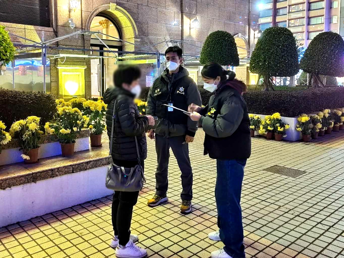 在警察总局统筹下,治安警察局于昨(25)日继续开展「冬防行动2023」,确保本澳在岁晚及春节期间的良好治安环境。治安警察局辖下澳门警务厅、海岛警务厅、交通厅及情报厅合共派出40名人员,分别在澳门各区巡查多间宾馆,以及在澳门娱乐场周边一带和离岛市区截查可疑人士,同时在各区进行查车行动,以预防及打击各种不法行为和犯罪活动。