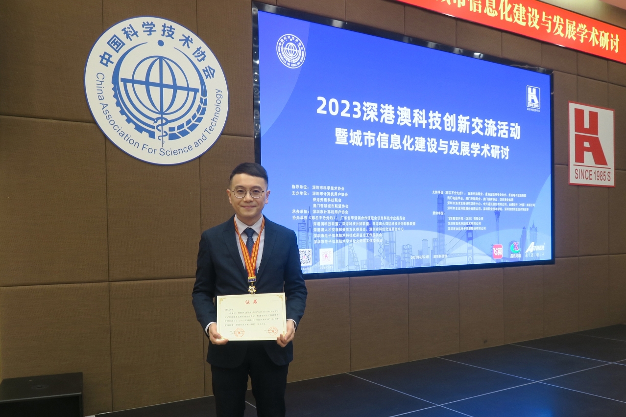 此外,深圳市科协党组成员孙楠亦还向项目第一完成人林智声授予深圳市计算机科技贡献二级奖章。林智声表示,该项目是澳大在科研和创新的重大成果。成功研发和应用该项目,将有助推动澳门乃至粤港澳大湾区的科技发展和经济转型升级。