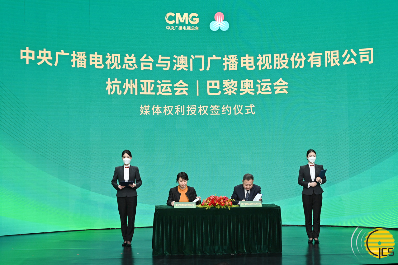 随后,中央广电总台体育青少节目中心和澳门广播电视股份有限公司双方代表签署了《第19届杭州亚运会媒体权利许可协议》和《第33届巴黎奥运会媒体权利许可协议》,澳广视获授权两个运动会的赛事媒体权利。根据协定,总台将自身持有的杭州亚运会赛事节目、巴黎奥运会赛事节目电视版权免费提供澳广视播出。