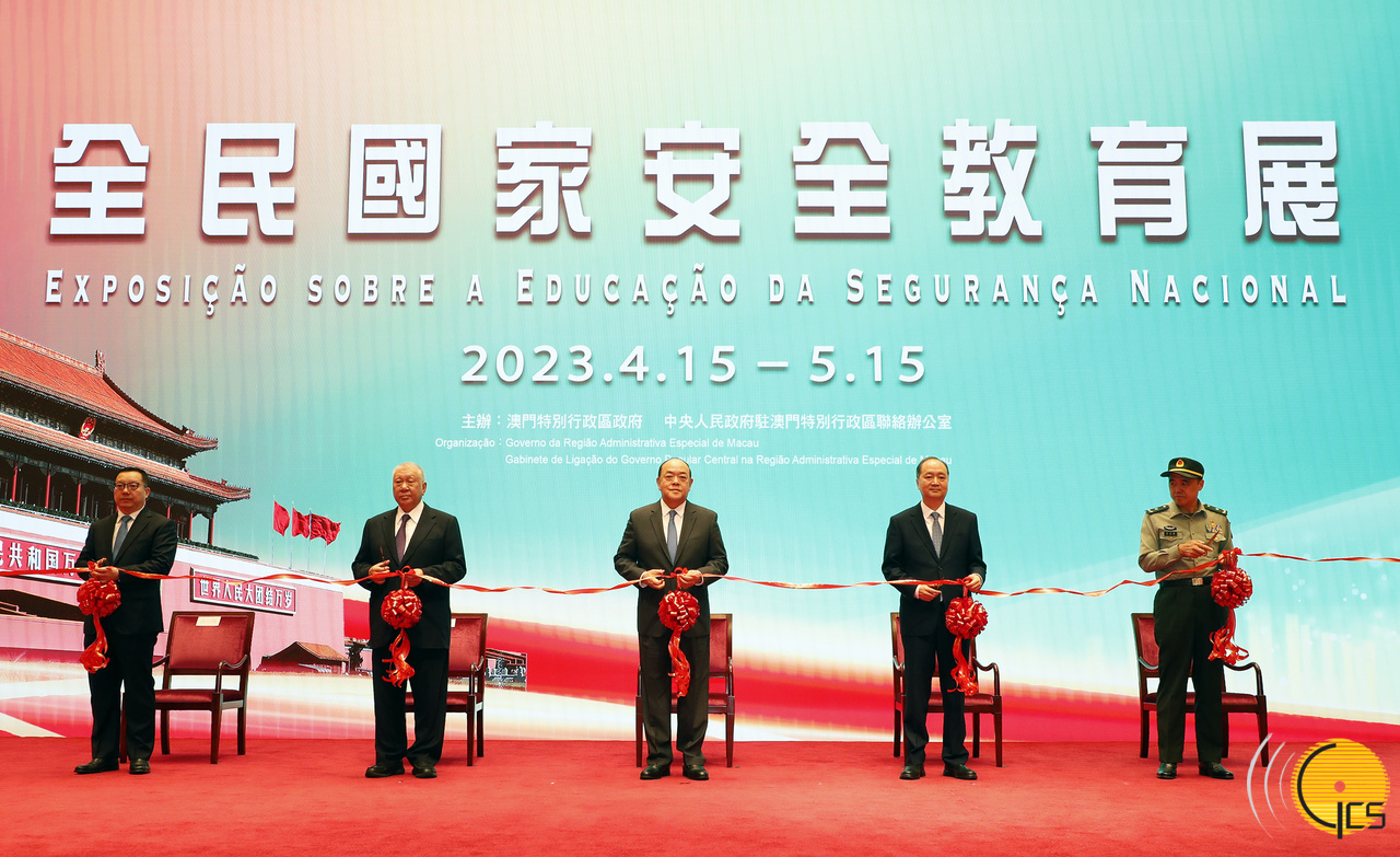 由澳门特别行政区政府与中央人民政府驻澳门特别行政区联络办公室合办的“全民国家安全教育展”上午在中国与葡语国家商贸合作服务平台综合体揭幕。开幕礼由行政长官、澳门特别行政区维护国家安全委员会主席贺一诚,全国政协副主席何厚铧,中央人民政府驻澳联络办公室主任、澳门特别行政区维护国家安全委员会国家安全事务顾问郑新聪,外交部驻澳特派员公署署理特派员孙向阳及中国人民解放军驻澳门部队政治委员孙文举主持,出席的政府官员及社会各界人士逾400人。