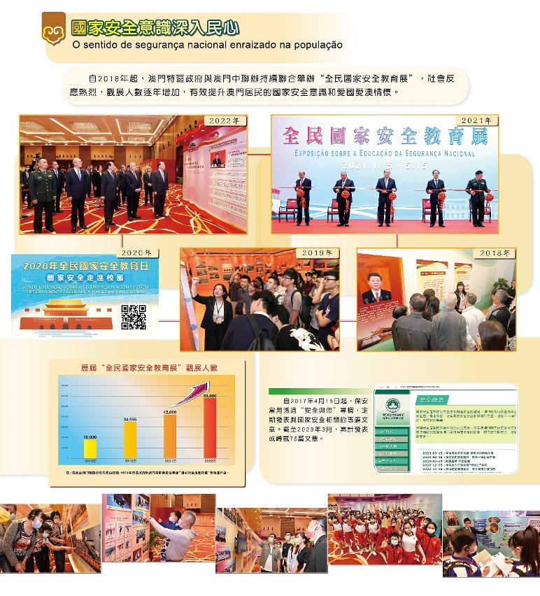 自2018年起,澳门特区政府与澳门中联办持续举办“全民国家安全教育展”,社会反应热烈,观展人数逐年增加,国家安全意识深入民心。