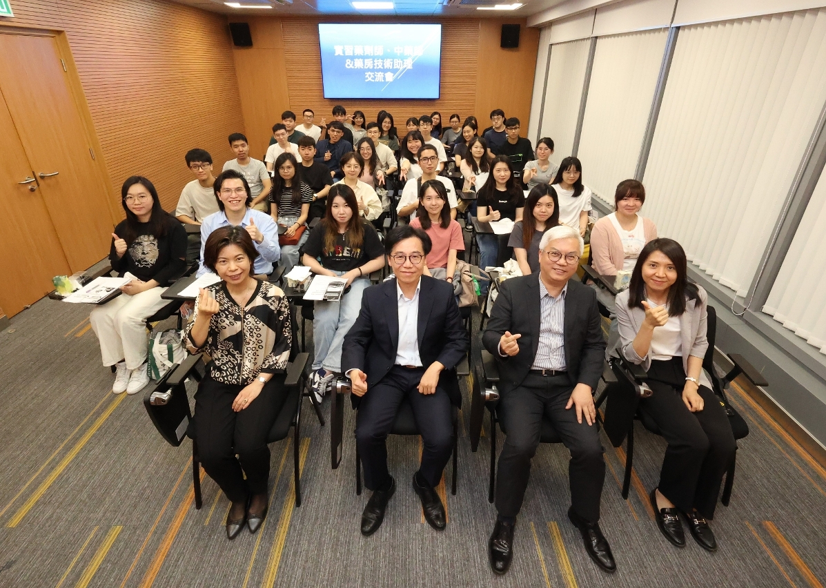 药物监督管理局于日前举办交流会,向即将执业的实习药剂师、中药师及药房技术助理介绍药剂专业现况和发展,并与实习人员互动交流,协助实习人员做好专业生涯规划。药物监督管理局蔡炳祥局长、吴国良副局长、准照及稽查厅郑艳红厅长、规划及质量管理厅刘雅文厅长等出席了是次交流会。