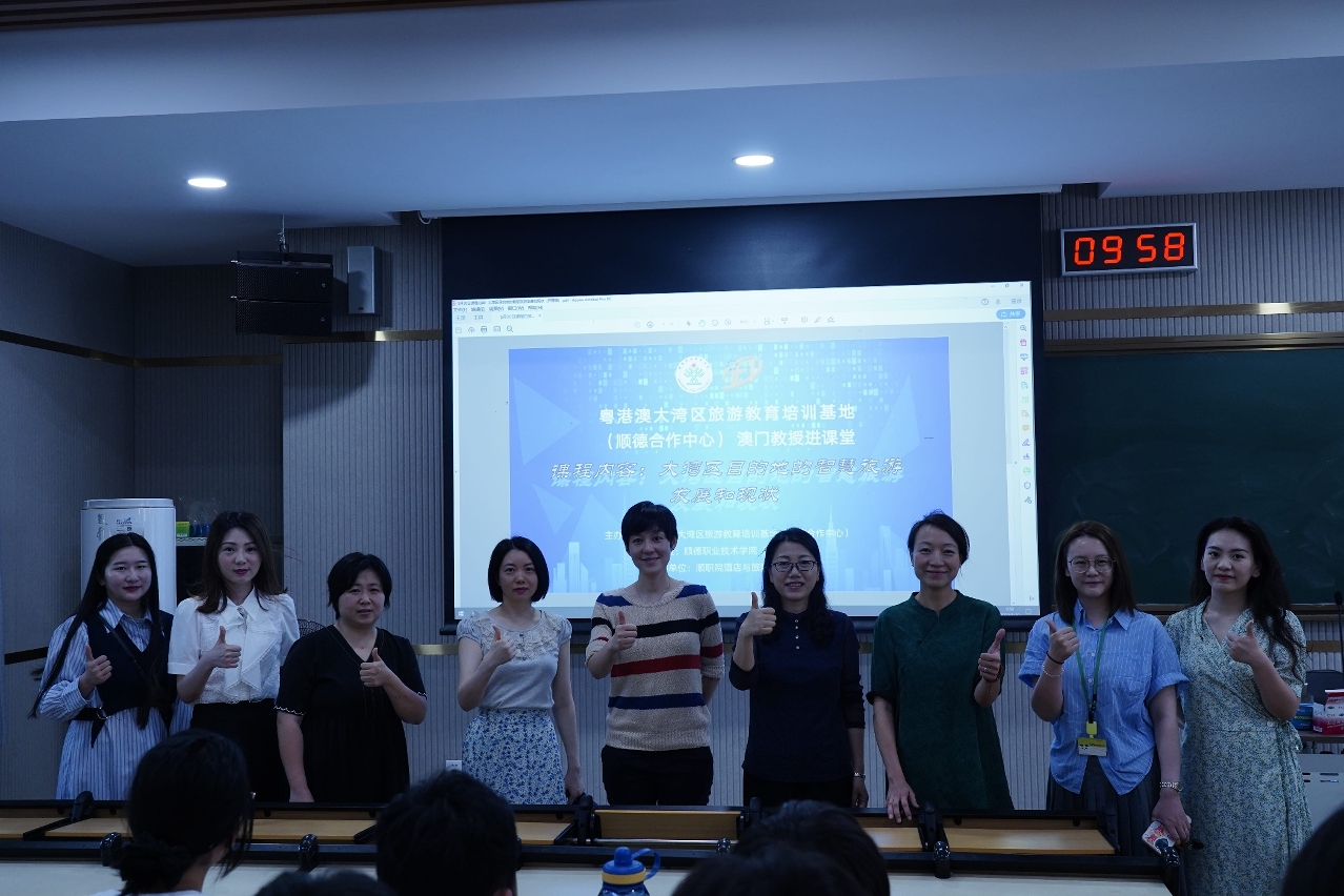 顺职院酒店与旅游管理学院院长甘慕仪邀请澳门旅游学院任连萍教授及齐珊珊和姚敏如两位副教授分别为顺职院酒店管理与数位化运营、旅游管理、会展策划与管理专业学生授课,围绕粤港澳大湾区酒店、旅游、会展行业发展现状及趋势、数位化带来的新变革等内容,与学生进行互动交流。