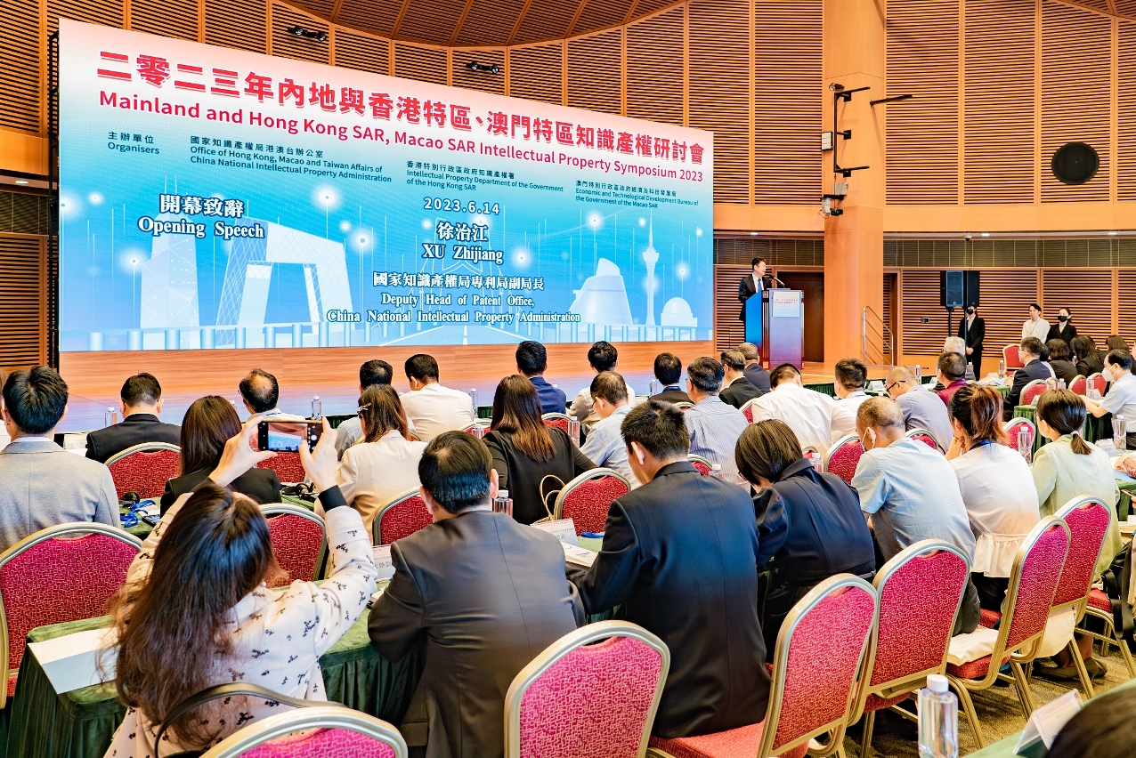 由国家知识产权局港澳台办公室、香港特区政府知识产权署和澳门特区政府经济及科技发展局联合举办的“2023年内地与香港特区、澳门特区知识产权研讨会”今(14)日假澳门科学馆会议中心召开。国家知识产权局专利局副局长徐治江、澳门特区政府经济及科技发展局局长戴建业和香港特区政府知识产权署署长黄福来出席了研讨会并致辞。
