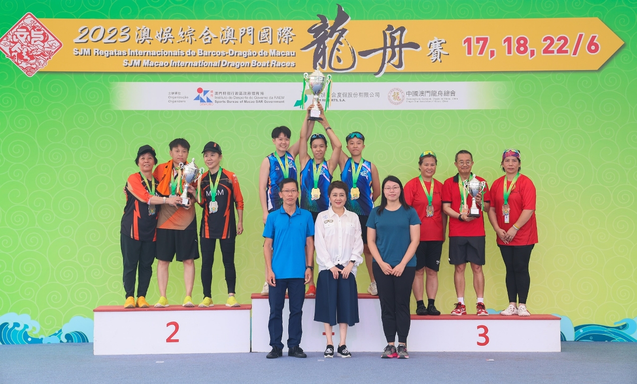 由体育局、澳娱综合度假股份有限公司及中国澳门龙舟总会主办,市政署及行政公职局协办的“2023澳娱综合澳门国际龙舟赛”,今日(18日)在南湾湖水上活动中心上演标准龙公开组及女子组赛事。经过连场竞逐后,消防局及澳门青少年发展协会分别继小龙赛公开组、女子组夺冠后,再夺标准龙公开组及女子组冠军,而6月22日端午节正日将进行多场精彩赛事,包括邀请赛标准龙公开组、女子组及大学生500米的赛事。