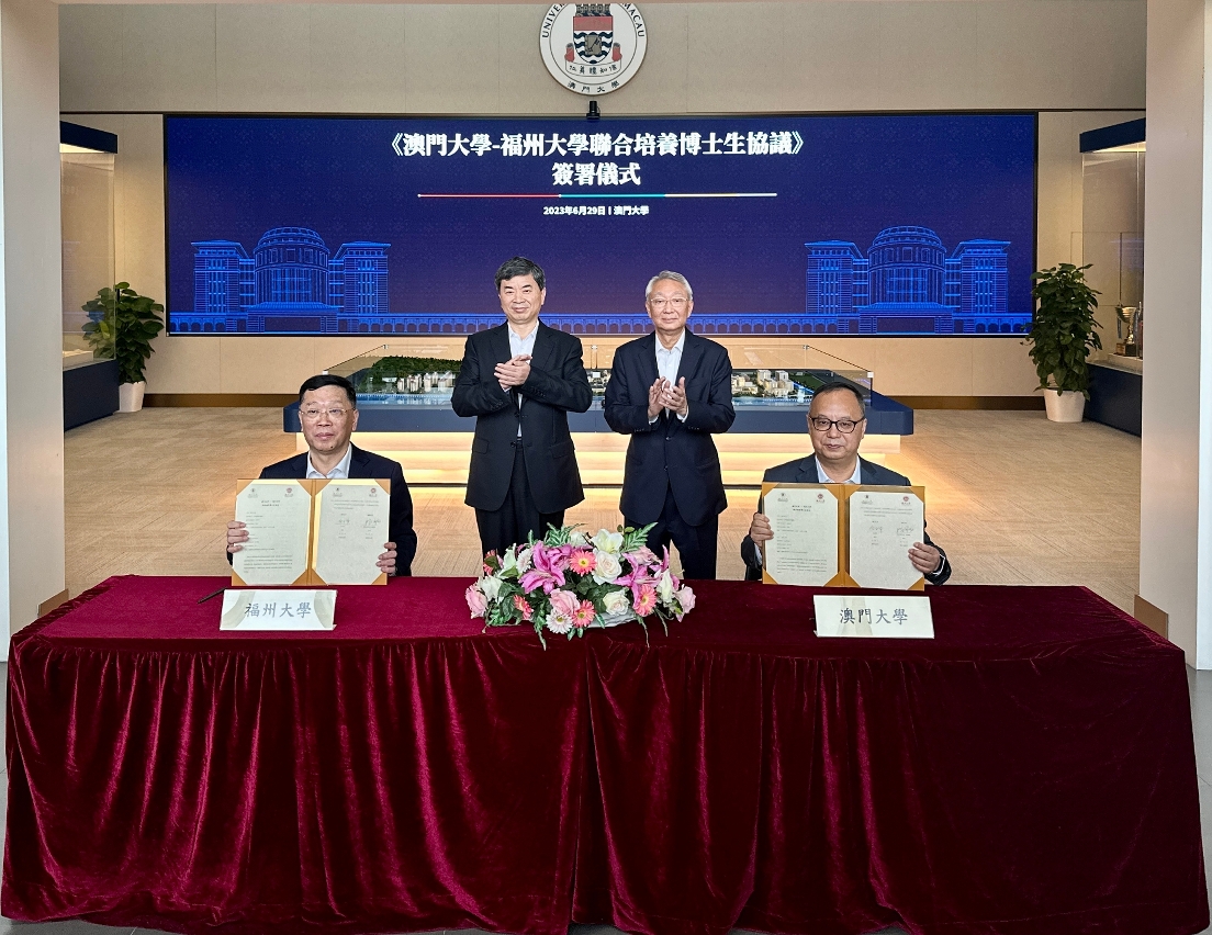 在周祖翼及林金城的见证下,宋永华与福州大学党委书记陈国龙共同签署协议。宋永华表示,两校将继续通过优势互补、强强联合,进一步深化交流与合作,共同提升教育质量和水平,携手推动对闽澳两地大健康领域的高端科研人才联合培养,为两地学生提供更广阔的学习和发展平台,助力澳门多元化发展和粤港澳大湾区建设。