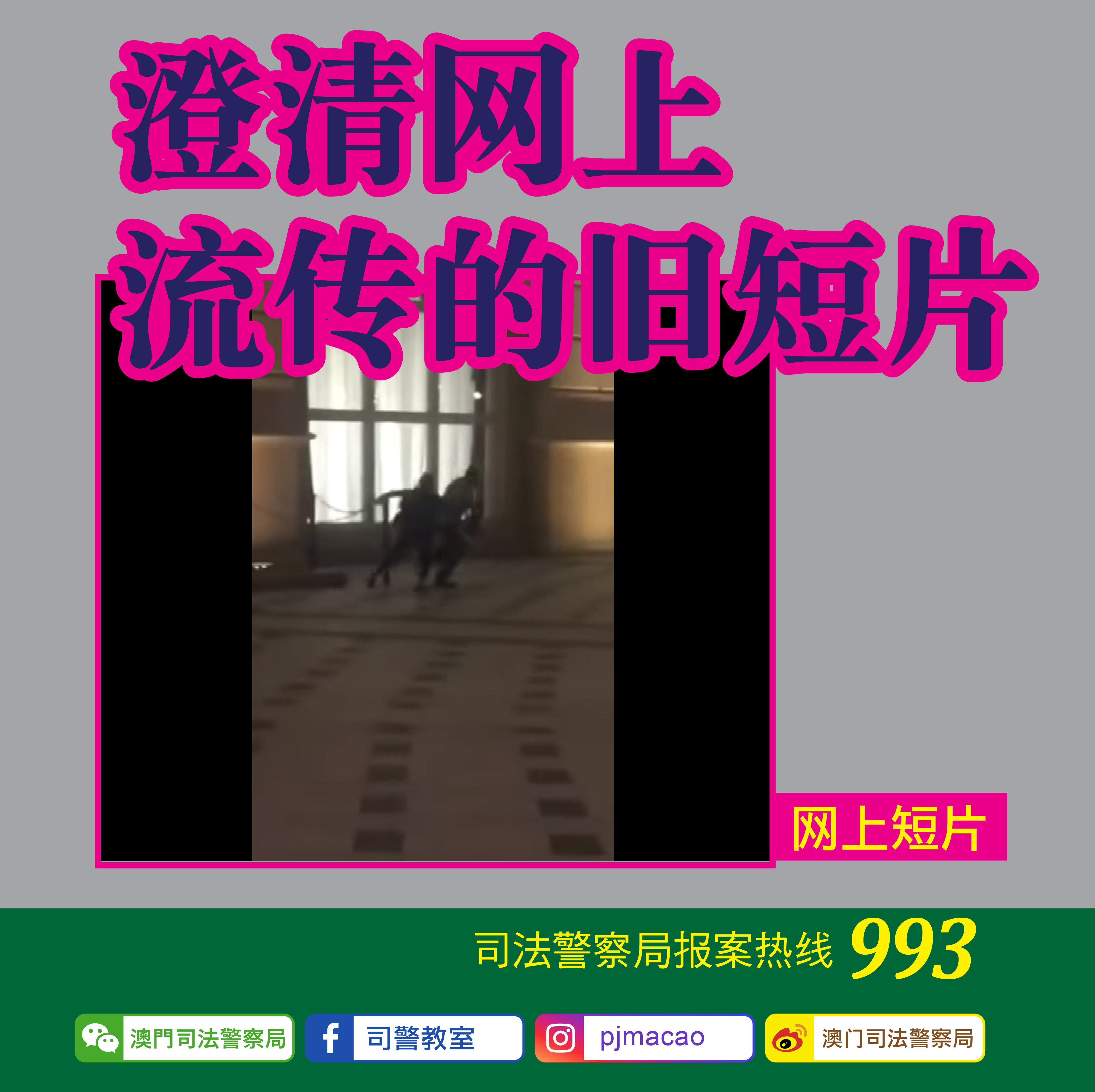 司警局在此呼吁,市民在网络平台或社交媒体转发任何信息前,须认真核实其真确性,切勿胡乱转发,以免引起不必要的猜测或恐慌;市民如怀疑遇到或知悉任何犯罪消息,应立即致电司警局报案热线993举报,警民合作,共同防罪灭罪。