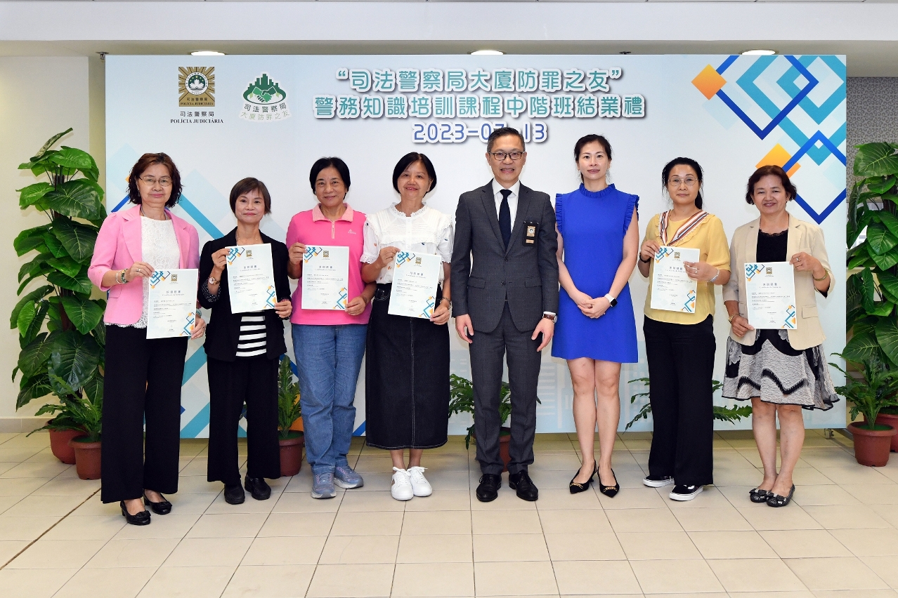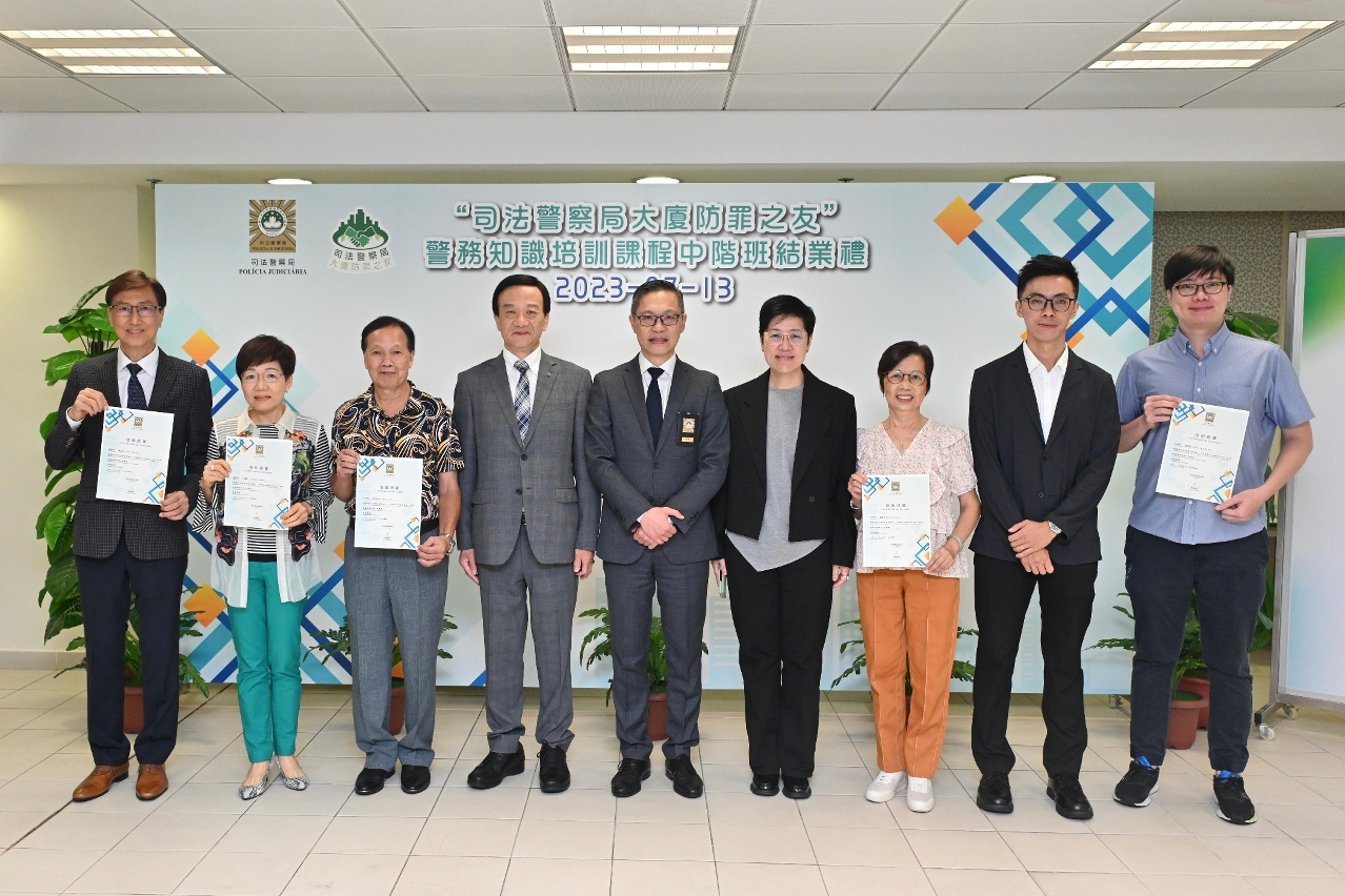 为增强本澳社团成员的防罪知识和能力,深化警民合作防罪灭罪的成效,司法警察局首次为社团领导层及资深会员举办“司警局大厦防罪之友警务知识培训课程社团中阶班",并于7月13日上午举行结业礼,共有29名来自本澳多个社团的骨干会员顺利完成课程,获颁发证书。