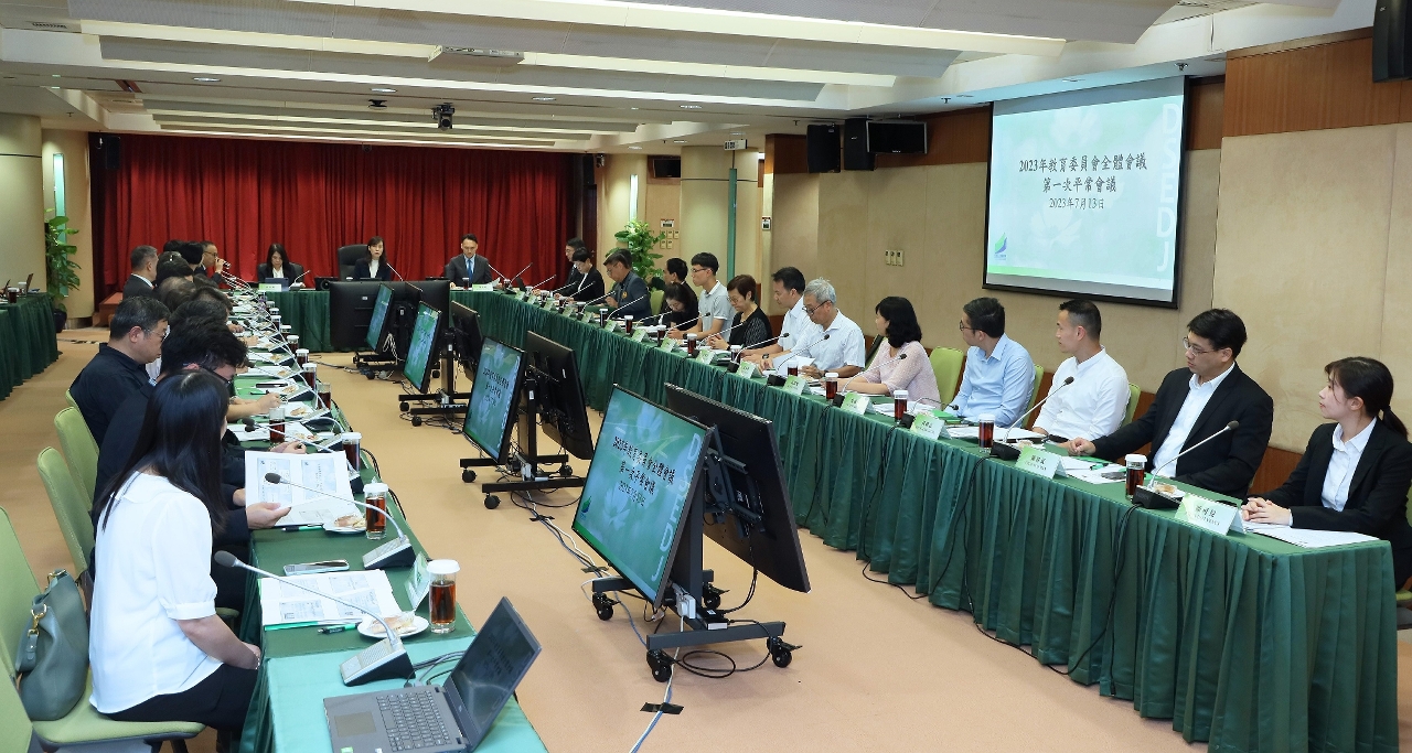 2023年教育委员会全体会议第一次平常会议于7月13日在教育及青年发展局仲尼堂举行,会议由教育委员会主席、社会文化司司长欧阳瑜主持,教育委员会副主席、教青局局长龚志明介绍会议各项议程。议程包括:简报澳门高等教育近期发展及对外交流合作工作情况、简介“非高等教育教学人员的专业发展制度”草案框架、介绍澳门学生赴葡升学及加强葡语教育的工作规划、报告教青局于暑假期间组织的身心健康活动及师生培训项目,以及微调《本地学制正规教育课程框架》方案等事项。