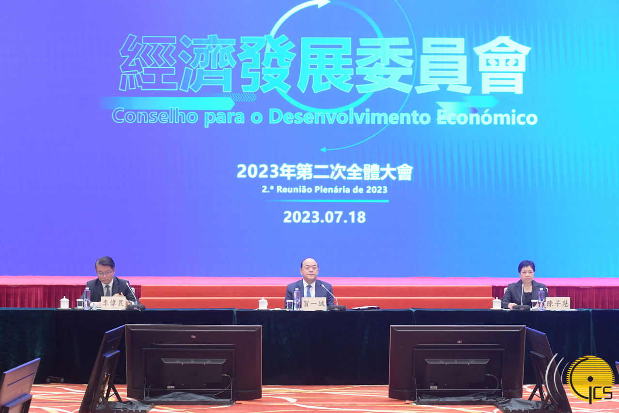 “经济发展委员会2023年第二次全体大会"于今(18)日上午召开,大会由经济发展委员会主席、行政长官贺一诚主持。会上讨论及通过了经济发展委员会内部规章,并介绍下设四个产业发展政策研究组的安排。经济发展委员会副主席、经济财政司司长李伟农介绍了目前澳门的经济情况,多位委员亦就澳门经济发展提出了意见及建议。