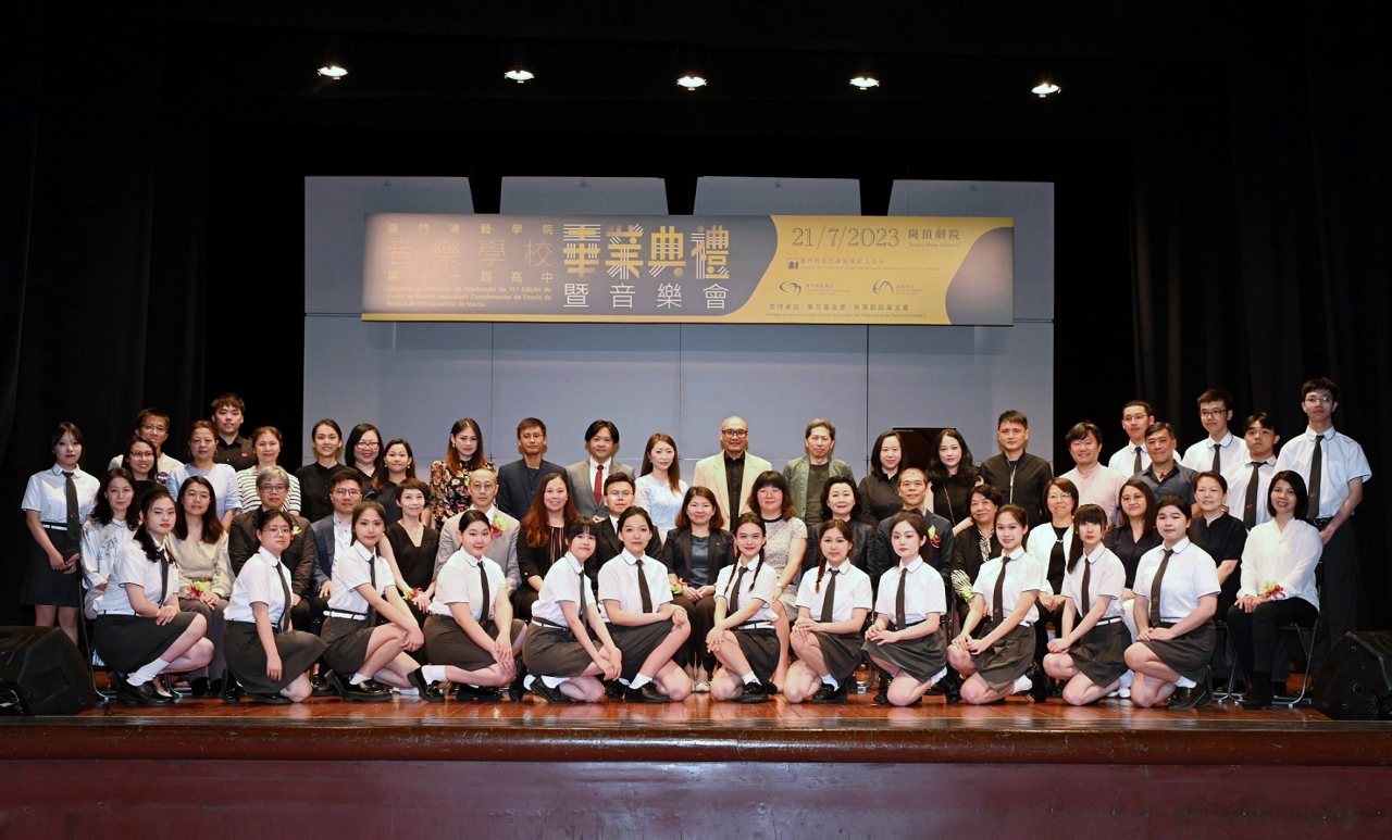 文化局辖下澳门演艺学院音乐学校于7月21日在岗顶剧院举行“第十一届高中毕业典礼暨音乐会”,社会各界人土及众家长莅临支持祝贺。