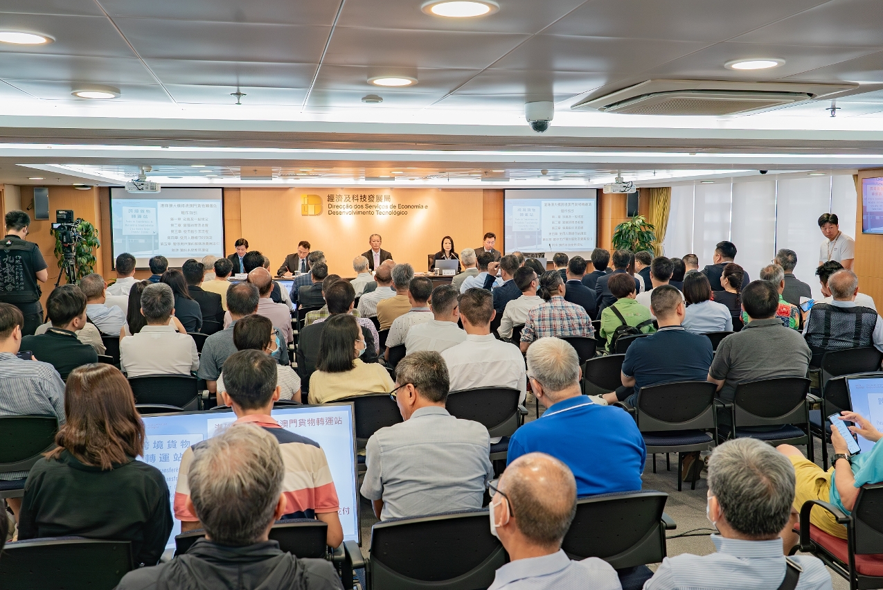 因应港珠澳大桥澳门跨境货物转运站将于2023年8月8日开始营运,为向业界介绍转运站的运作、服务、使用方式等内容,经济及科技发展局联同澳门海关、交通事务局及营运服务公司于今(2)日上午11时在国际银行大厦七楼会议室举办“港珠澳大桥澳门跨境货物转运站跨部门联合讲解会”,约120位物流运输业界代表出席。