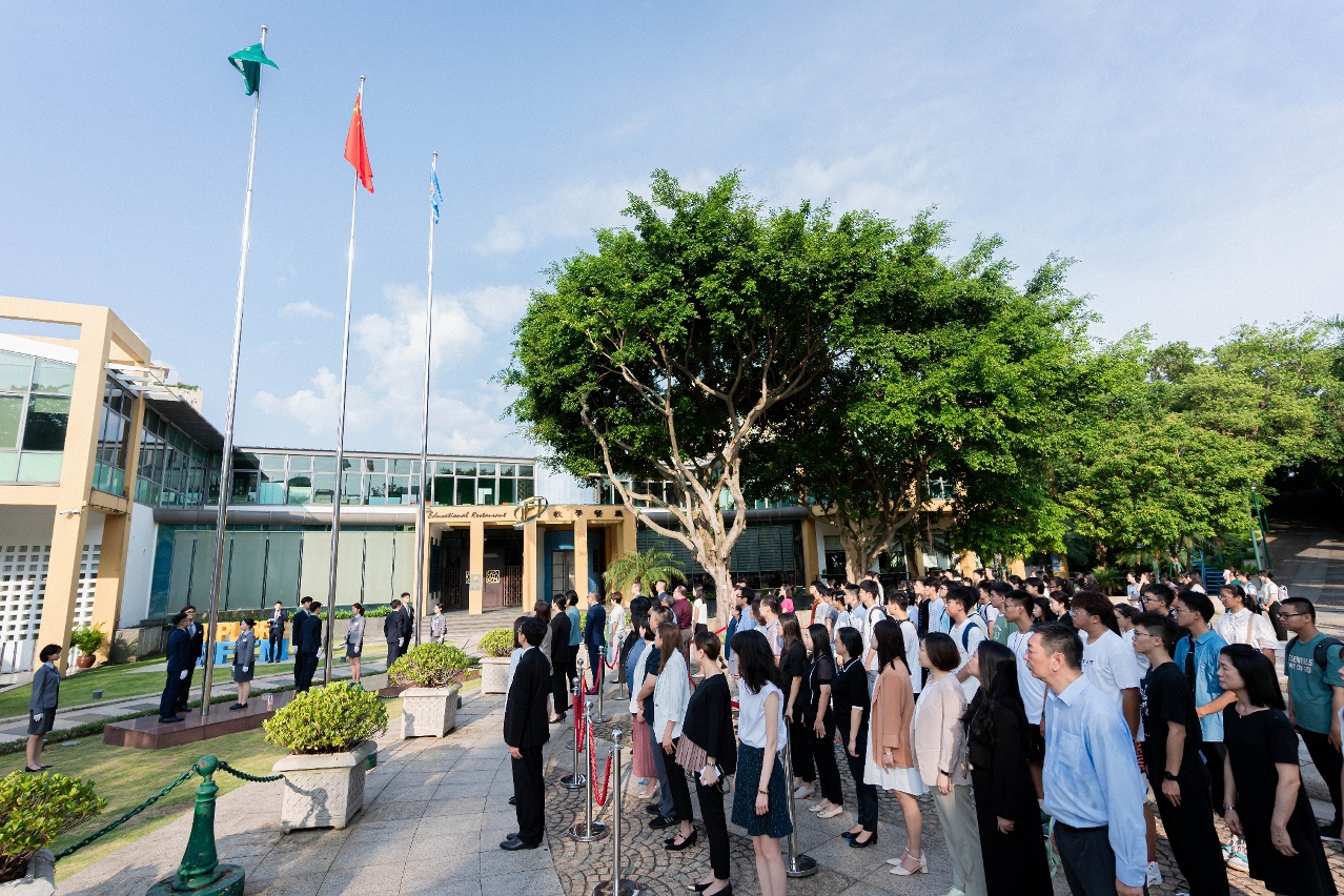 为贯彻爱国爱澳教育,率先让新生对国情有进一步认识,开学礼当天还举办了本学年的首次升国旗仪式及两场讲座,学院邀请到澳门大学法学院宪法与基本法研究中心主任骆伟建教授主持“认识《宪法》、《基本法》与《维护国家安全法》关系"专题讲座。为提高新生防骗意识,在司法警察局协助下,一等刑事侦查员方博先生为学生对有关「网络犯罪及防诈骗」进行专题讲座,让学生时刻提高警惕,预防堕入网络犯罪及诈骗陷阱。