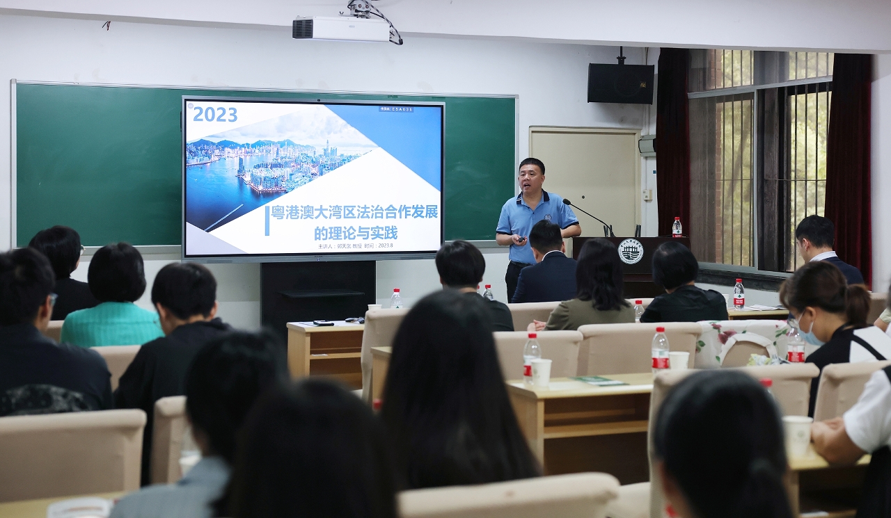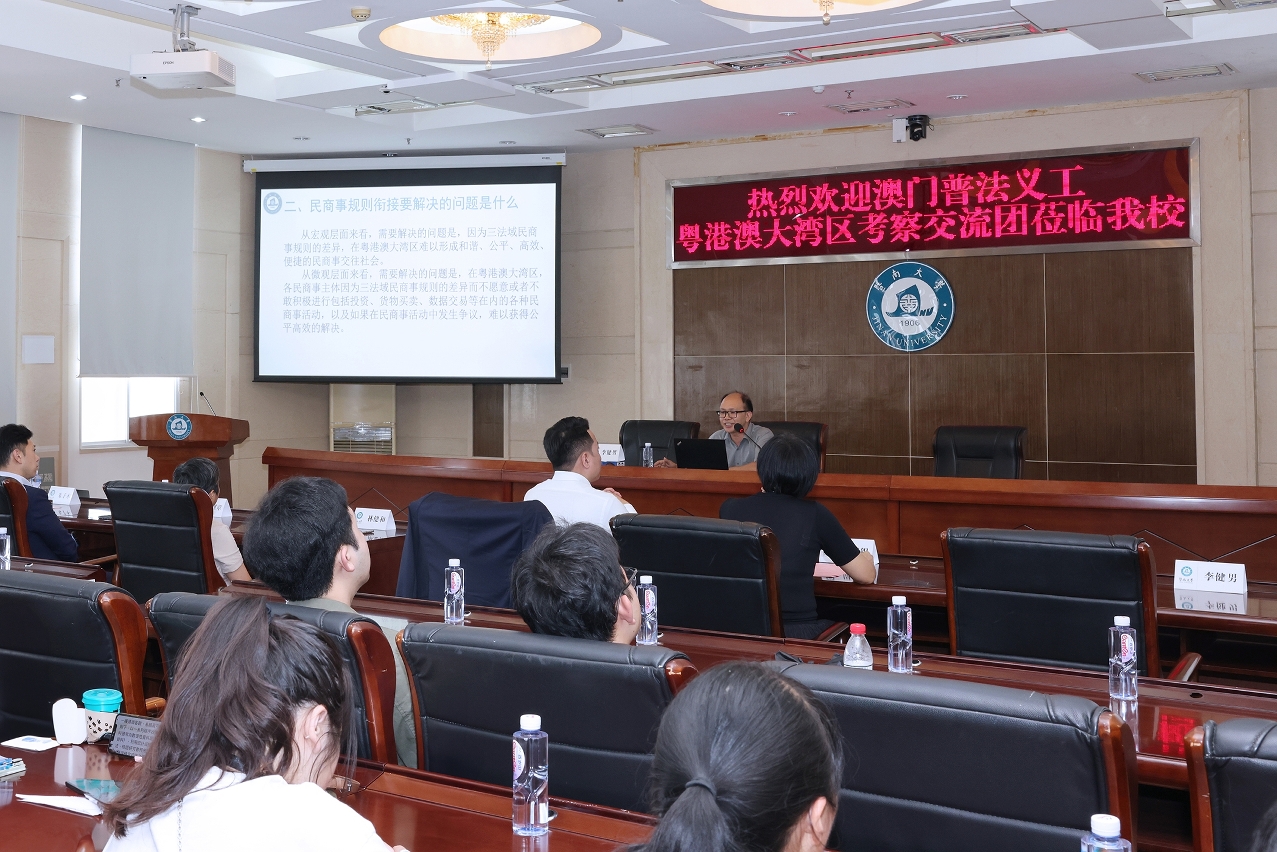 8月23日至25日交流团于广州继续行程,期间前往了中山大学和暨南大学学习交流,中山大学法学院郭天武教授和暨南大学法学院李健男教授分别以“粤港澳大湾区法治合作发展的理论与实践”和“粤港澳大湾区民商事规则衔接之解释”为主题向团员们进行授课。
