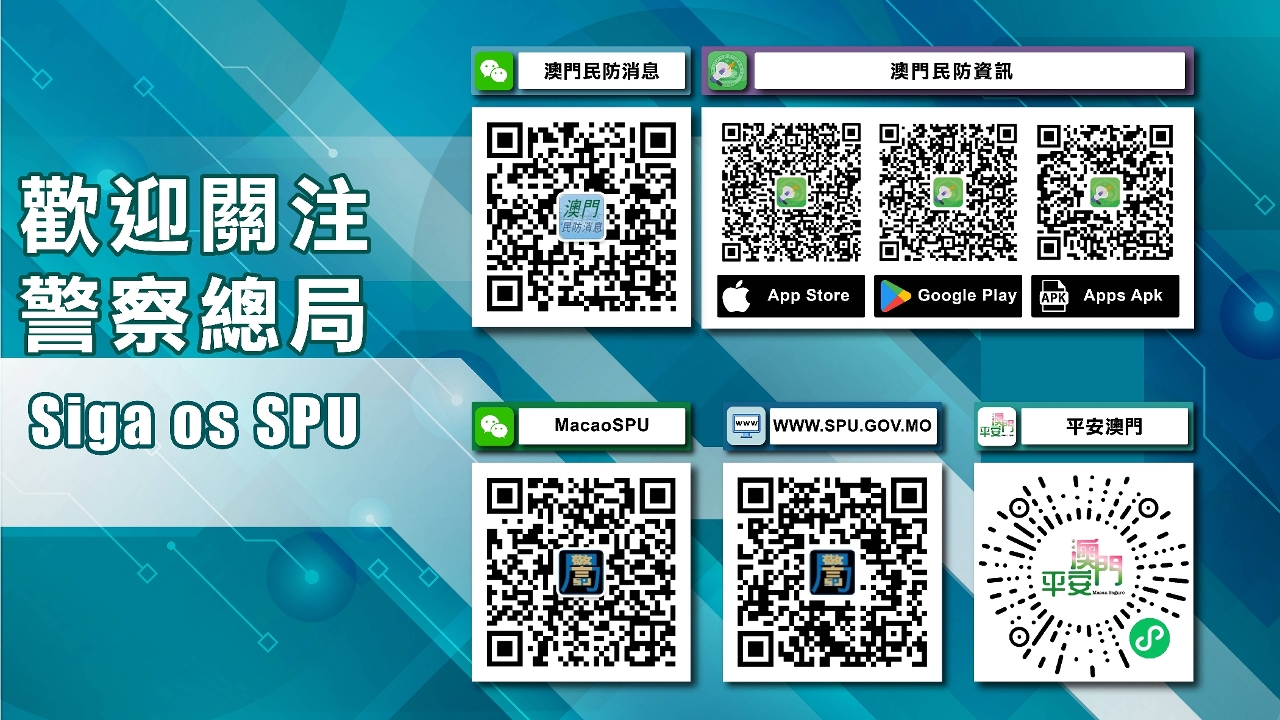 市民和旅客可透过下载“澳门民防资讯”手机应用程式、关注“澳门民防消息”微信官方帐号或“平安澳门”微信小程序,时刻获取即时的民防资讯。