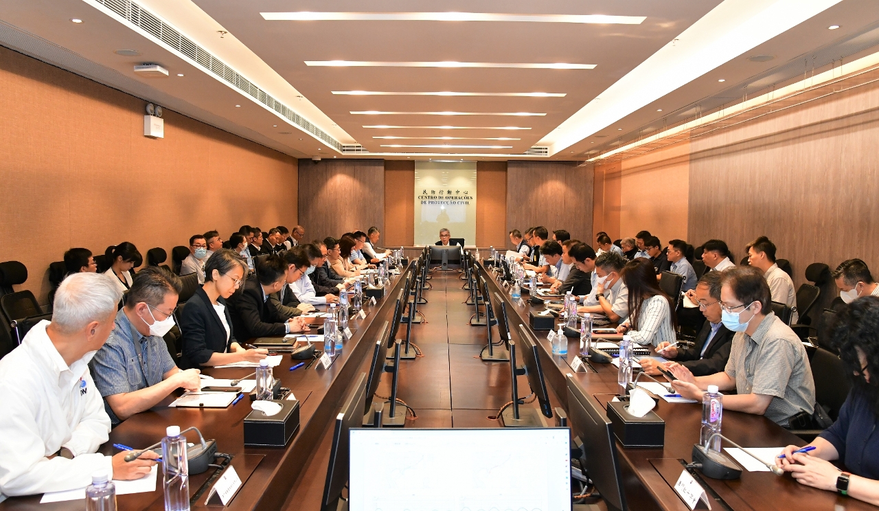 会上,各民防架构成员按自身职能,汇报了各项内部应对工作,包括﹕已做好疏散撤离的准备工作,并提前与需辅助人士取得联系,以便在有需要时,为他们提供即时的协助等﹔避险中心的物资和人员轮值已作安排﹔亦向学校发出暂停开学的消息﹔与酒店业界加强沟通,确保在澳旅客能获取最新的民防的资讯﹔另外,就台风期间的电力供应、公共交通、航班、病患安排、地下停车场封闭、海上船只安置和建筑设施巩固等措施亦已作出沟通和备好预案。