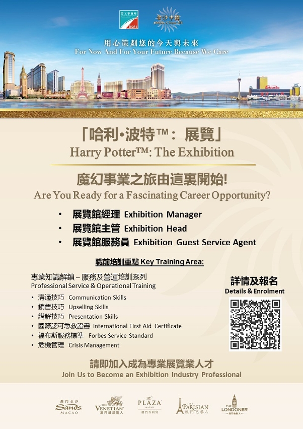 为进一步培育本地展览业人才,推动产业适度多元,劳工事务局和金沙中国有限公司(下称“金沙中国”)合作推出“「哈利·波特™:展览」招聘专项计划”(下称“计划”),以“先入职、后培训”方式,协助符合岗位要求和有意从事展览业的澳门居民就业,该计划由9月13日起接受申请。