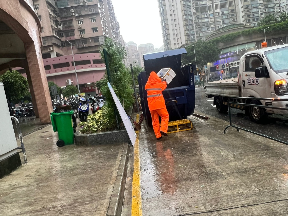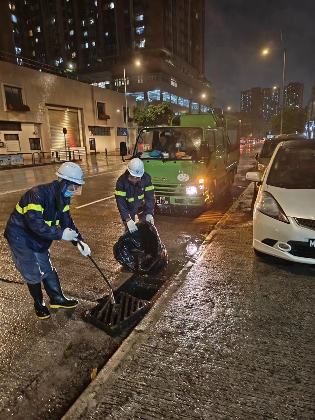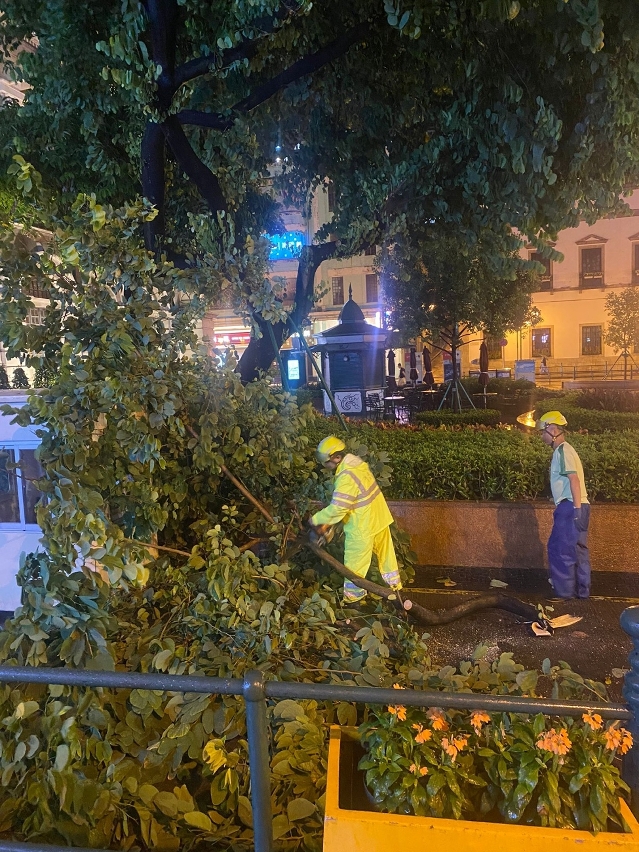 台风期间,市政署持续检查及清理渠道、疏通雨水井、监察泵房运作,确保尽快排走积水,舒缓水浸,减少对市民生活的影响,并派员清理倒塌的树木断枝,以免阻碍交通。风暴过后,立即派员巡查辖下绿化设施,加快清理市面垃圾。