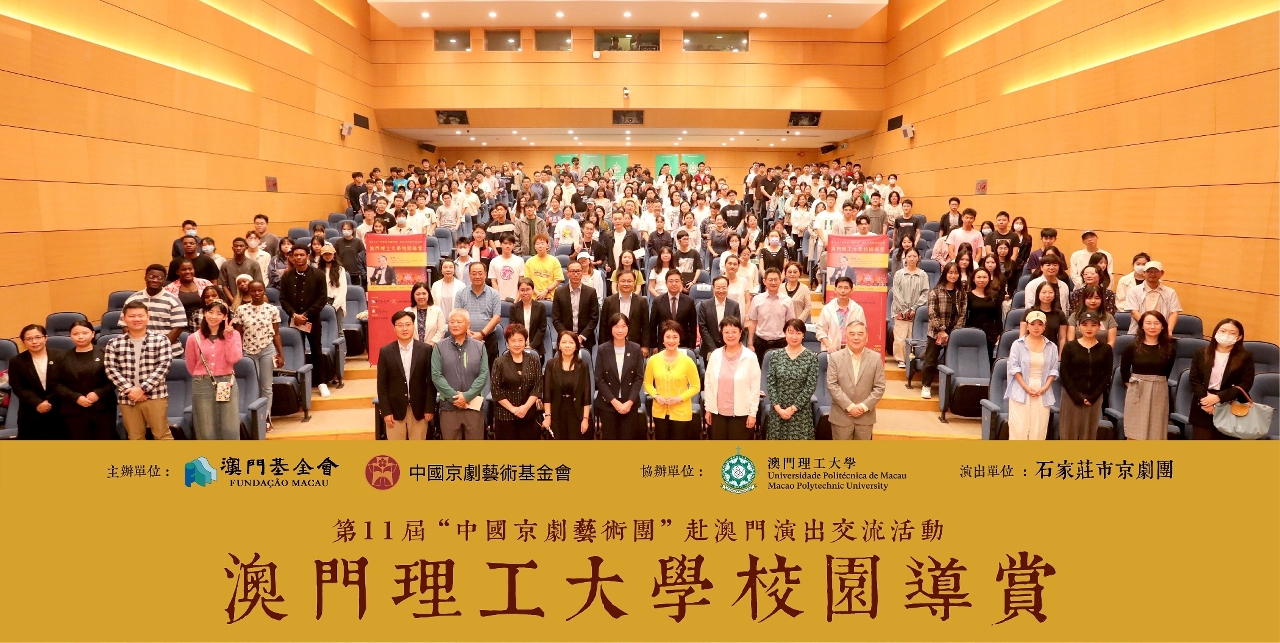 为传承国粹精华,为大学生及青年搭建艺术交流平台,由澳门基金会、中国京剧艺术基金会主办,澳门理工大学协办的“中国京剧艺术团”赴澳门演出交流活动——澳门理工大学校园导赏于10月11日在澳门理工大学礼堂隆重举行。活动由中国京剧艺术基金会副理事长兼秘书长崔伟主讲 “京剧艺术欣赏浅谈”,同场由石家庄市京剧团作演出示范,大受欢迎。澳理大师生近四百人出席,掌声连连,场面热闹。