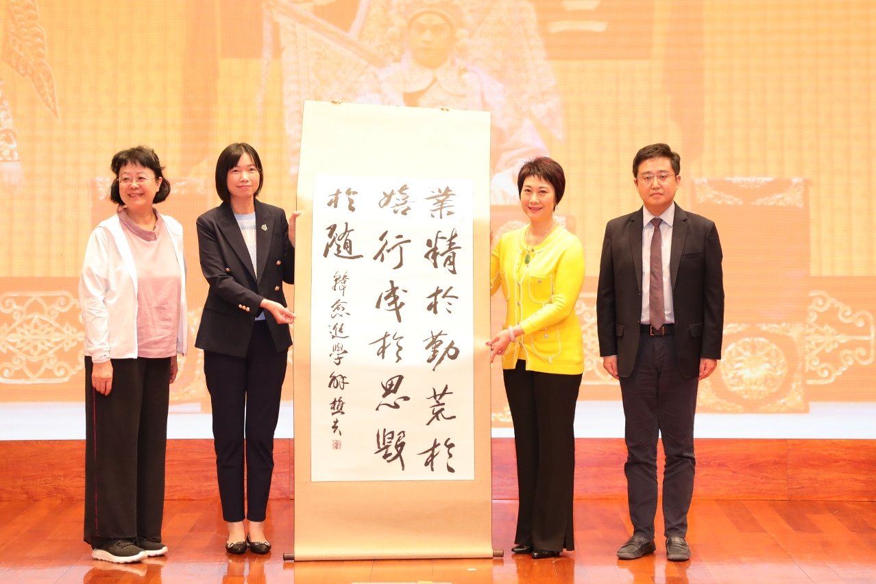 活动期间,中国京剧艺术基金会理事、澳门理工大学名誉教授、着名京剧演员董圆圆及中国京剧艺术基金会副理事长王春祥向澳门理工大学致送由中国京剧艺术基金会理事长张建国和副理事长李军亲手写的书法作品,赞扬澳理大专注创新高水准办学,坚持多元育才;同时勉励同学们勤奋学习,好学深思。