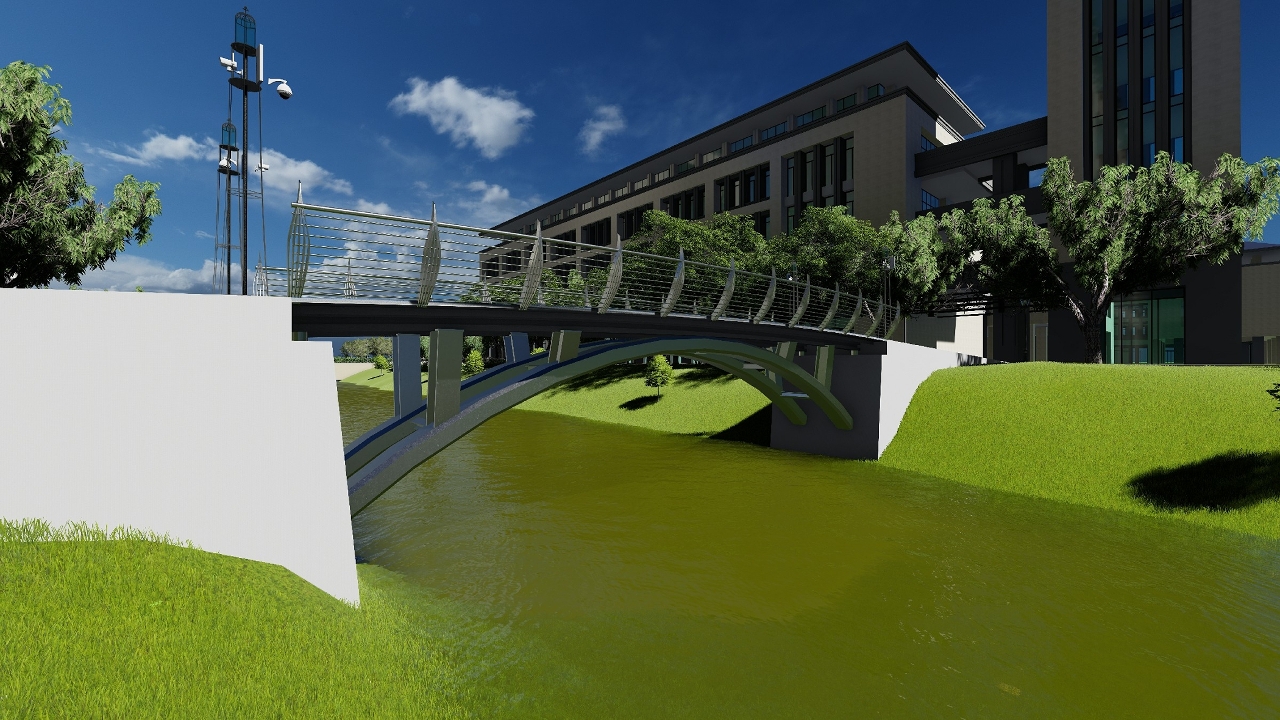 五名获奖学生:桂飘、牛孟锴、黄文旭、容婉君和关育翔来自澳大科技学院土木及环境工程系和智慧城市物联网国家重点实验室,他们在颜王吉教授和林智超教授的指导下,提出了类比盛世莲花造型的“镜海莲馨”钢拱桥方案,从公益性、科学性、先进性、实用性、经济性等角度开展设计,并进行了详细的建模计算分析,融合了智慧城市和节能环保的创新元素,在决赛答辩中获得专家一致好评。