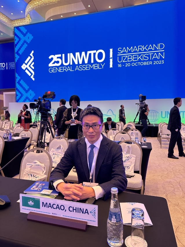 联合国世界旅游组织第25届全体大会于10月16至20日在乌兹别克斯坦撒马尔罕举行,中国澳门以准成员(Associate Member)身份参加,并由旅游局副局长程卫东代表出席。程副局长一行除参加全体大会外,还参加了准成员会议,商讨准成员界别在组织内的工作及未来计划,增进交流。