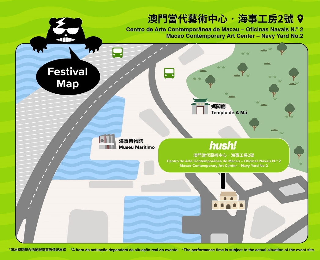 此外,hush! 音乐活动再次延伸至海上,一连两周末特设“音乐海上游”,将海陆结合的观光概念提升至全新艺术层次,“澳门海上游”观光船将接载乐迷来往妈阁至路环,首周4场“音乐海上游”将带来活跃港澳的本地低音音乐场景重要人物之一DJ Saiyan,以及本地电音音乐制作人Lobo的演出,同时更将串联马忌士前地的hush! 音乐会,参与者只需徒步5分钟即可前往马忌士前地欣赏其他精彩演出。