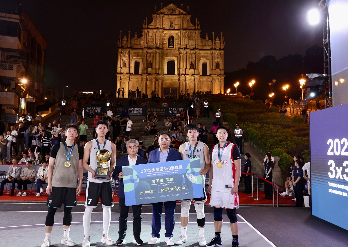 由澳门特别行政区政府体育局及澳门星娱乐制作有限公司主办,中国澳门篮球总会及齐睿体育活动策划有限公司协办,永利渡假村(澳门)股份有限公司赞助的《2023大湾区3x3篮球赛》,今(29)日于大三巴牌坊上演澳门总决赛压轴日赛事,最终由男子组常州MDMX及女子组戎福控股战狼联夺冠。