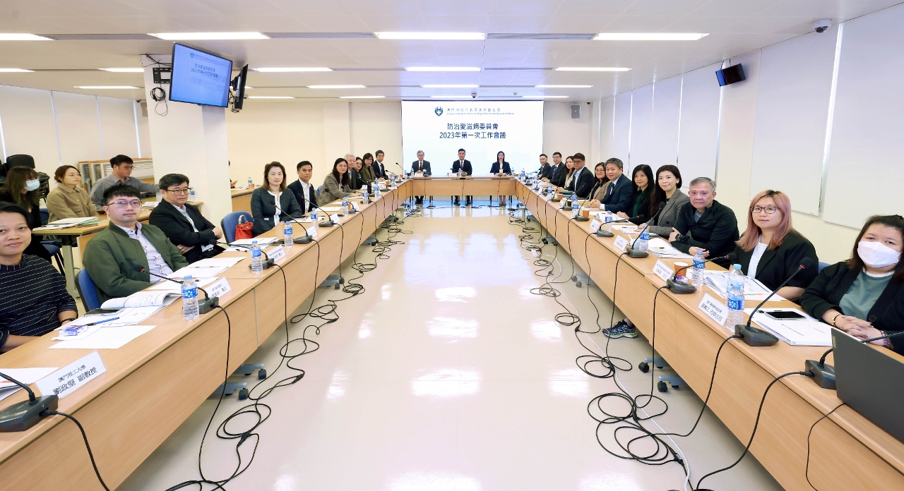 澳门特别行政区政府防治爱滋病委员会于日前召开本年度工作会议,由卫生局罗奕龙局长主持,仁伯爵综合医院郭昌宇院长、社会工作局防治赌毒成瘾厅郑耀达厅长、教育及青年发展局蔡敏芝厅长、防治爱滋病委员会梁亦好秘书长和其他政府部门、医疗机构、团体组织的委员及代表等出席会议。