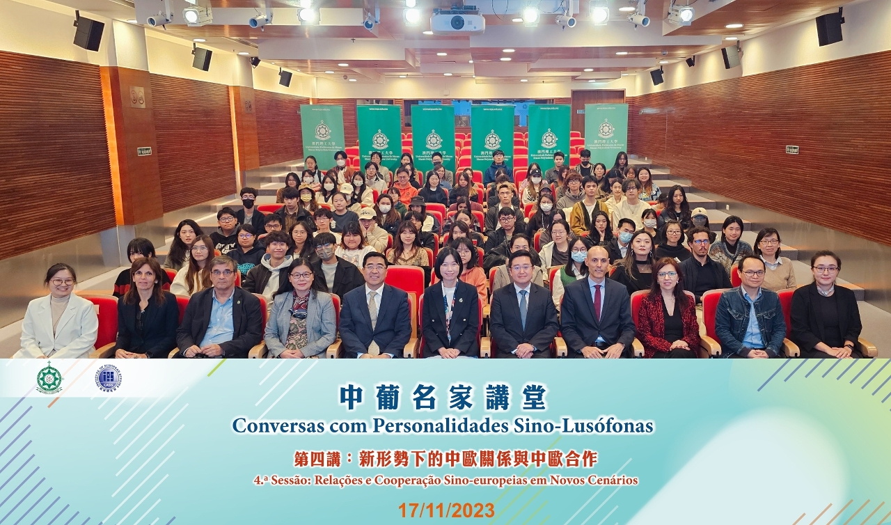 为落实《澳门特别行政区政府二零二四年财政年度施政报告》,助力澳门“为促进中国和葡语国家各领域合作交流发挥平台作用”,在中葡论坛(澳门)成立二十周年之际,由澳门理工大学语言及翻译学院和中国社会科学院欧洲研究所联合主办、澳门理工大学葡语教学及研究中心以及国际葡萄牙语培训中心协办的“中葡名家讲堂”第四讲于11月17日成功举行,由中国社会科学院欧洲研究所所长冯仲平教授主讲,讲座主题为“新形势下的中欧关系与中欧合作”。澳门理工大学及中国社科院近百名学者、师生出席此次活动,场面热闹。