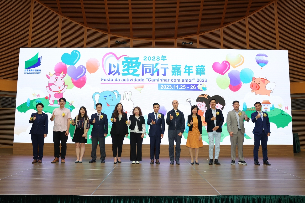 “以爱同行嘉年华”开幕仪式于11月25日下午举行,教青局副局长黄嘉祺、社会工作局家庭及社区服务厅厅长李丽萍、卫生局仁伯爵综合医院精神科代主任郭伟德、教青局非高等教育厅厅长蔡敏芝、澳门中华教育会副会长何少金、澳门天主教学校联会理事伍助志、圣公会澳门社会服务处服务总监叶鉴波、澳门明爱服务主任吴丽英、澳门中华新青年协会升学就业委员会主任邝子筠、澳门中华学生联合总会升学辅导主任许千里,澳门科技大学学生事务处处长兼澳门学生事务协会会长黄嘉颕、澳门城市大学学生事务处处长邹辰宠、澳门大学社会科学学院心理学系临床督导刘振峰等“以爱同行──关注青少年精神与身心健康工作小组”成员出席。现场约200名家长与子女欣赏以生命教育为主题的《见习陪审团》──布偶剧场的演出,一同探讨生命的意义,宣导珍惜生命、积极面对逆境,一同做健康守门员的讯息。