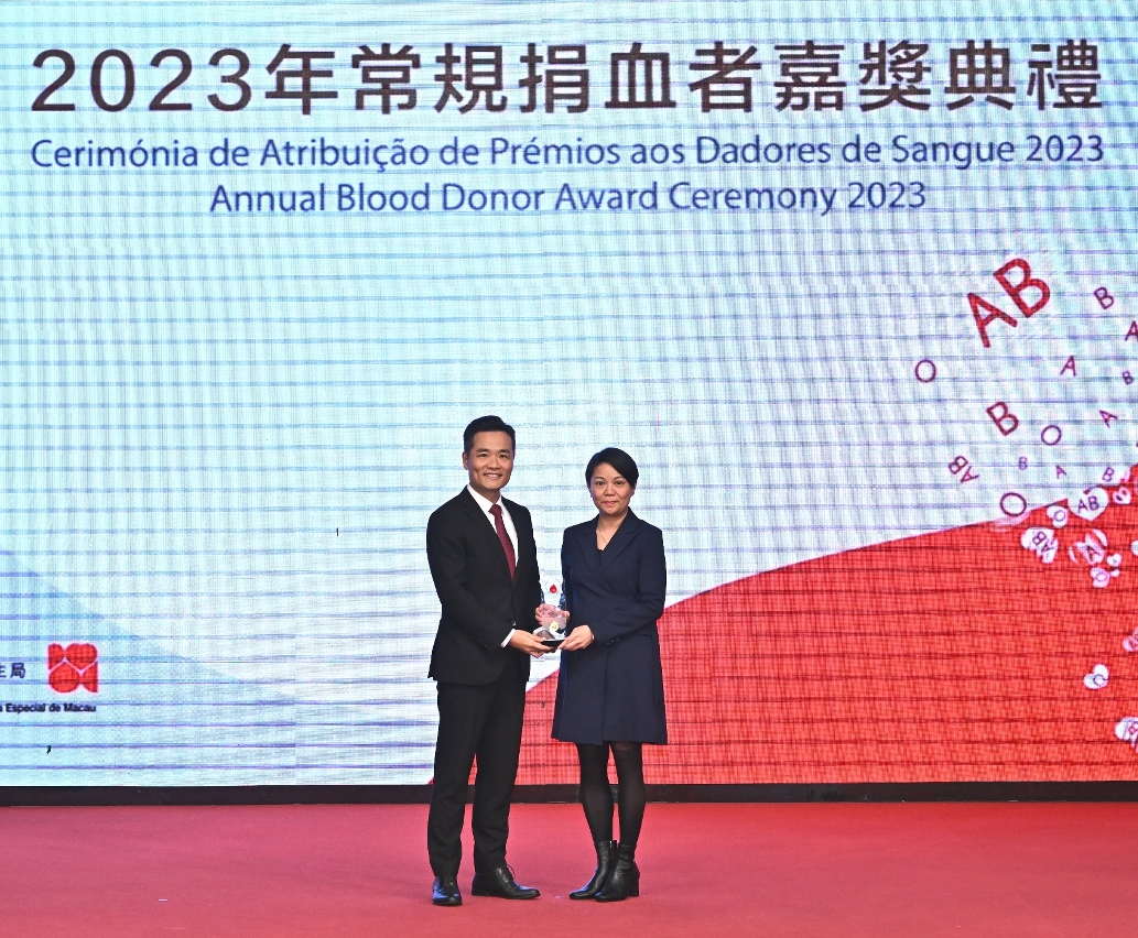 “2023年常规捐血者嘉奖典礼”于日前圆满举行,卫生局罗奕龙局长、解放军驻澳门部队保障部部长王永军大校、中联办宣传文化部王惠杰处长等出席了典礼并颁发了奬项。典礼公开表扬无私奉献的捐血者和积极推动捐血活动的团体机构,以引起社会共同关注和鼓励更多居民积极参与捐血行动。