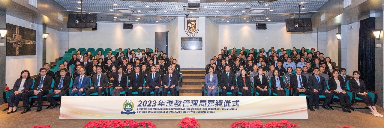 于12月11日上午,惩教管理局假澳门保安部队高等学校礼堂举行2023年度嘉奖仪式,表彰先进、鼓舞士气,同时对本年度的各项工作进行总结。仪式由保安司司长黄少泽主礼,保安司司长办公室主任张玉英出席。