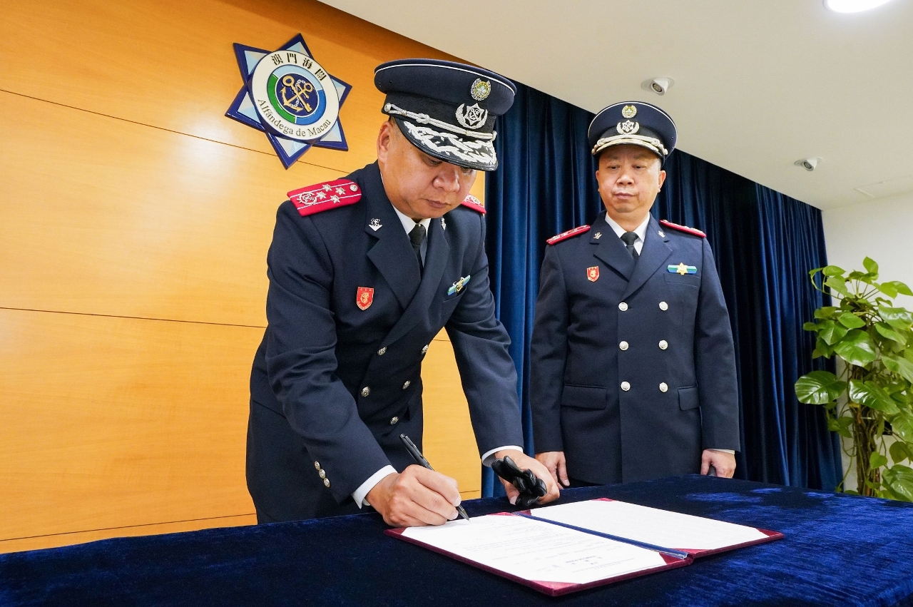 澳门海关今(18)日下午于海关总部大楼举行海关副关长就职仪式,在海关领导和各部门主管的见证下,李煜辉助理关长进行宣誓及签署就职状,就任海关副关长。