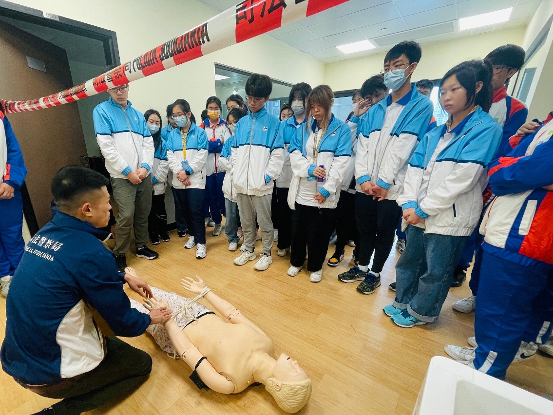 12月29日上午,司警局社区警务及公共关系处处长赵朱惠敏率领关注少年组人员及两项青年计划学员热情接待少年警讯会员一行人到访。司警局人员首先向少年警讯会员简介局方的架构、职能和社区警务工作概况,以及举办两项青年计划的宗旨、内容和推行情况;随后带领他们参观司法警察学校的现场勘查教学室、指纹采集教学室及模拟法庭等教学设施,让他们进一步瞭解本澳的司法制度、司警局的执法和刑侦人员培训工作。
