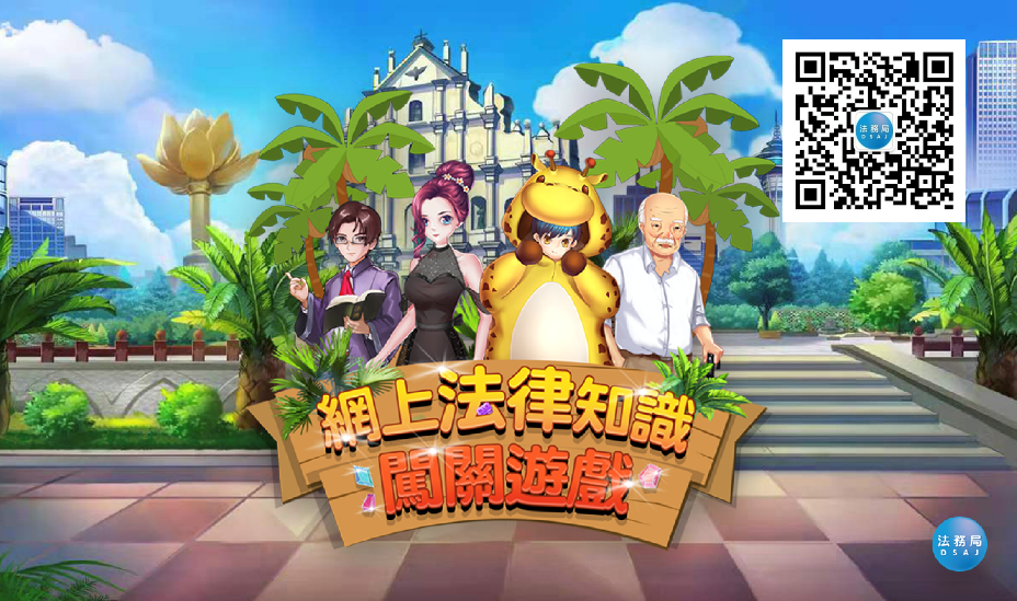 为持续加强本澳市民对《宪法》、《澳门基本法》、《行政长官选举法》和《维护国家安全法》,以及与民生息息相关法律的认识,法务局继续推出“网上法律知识闯关游戏”,欢迎市民踊跃参与。