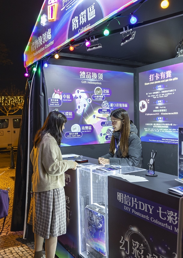 公众在“2023幻彩耀濠江”各区的活动现场拍照打卡,标注 #2023幻彩耀濠江 或 #lightupmacao2023 或 #ilumninarmacau2023,分享至任何一个公开的社交媒体并集齐20个“赞”,可于咨询站换取“2023幻彩耀濠江”主题纪念品乙个。